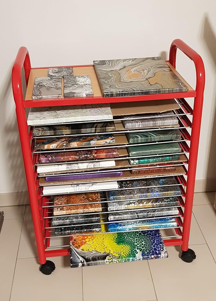 Le chariot de séchage mobile est fabriqué en métal robuste recouvert de peinture en poudre et est parfait pour stocker les photos, dessins ou objets artisanaux humides jusqu'à ce qu'ils soient secs !
