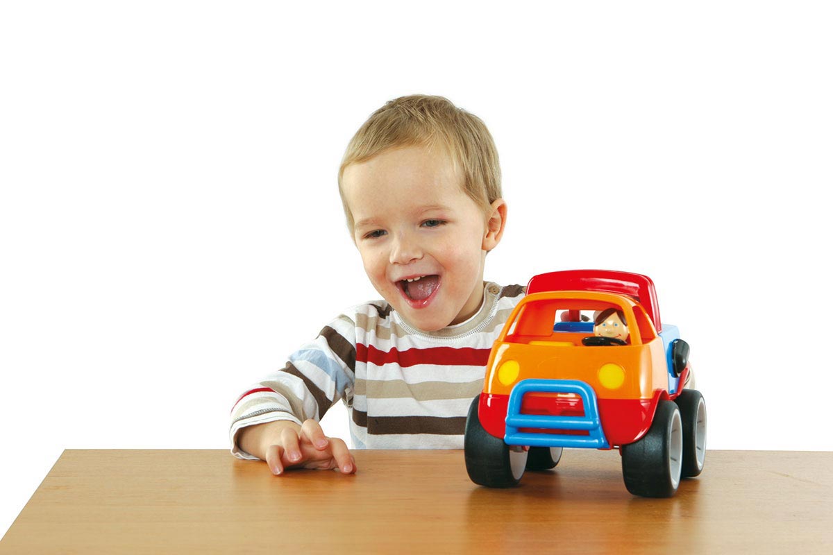 Das Fahrzeug besticht mit seinen gummierten Räder und seiner starken Stahlachse, mit der das Abenteuerauto einiges an Gewicht aushält. Es besteht außerdem aus hochwertigem Kunststoff und lässt sich leicht unter fließendem Wasser oder mit einem feuchten Tuch reinigen.