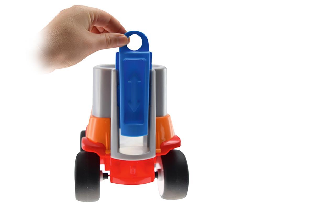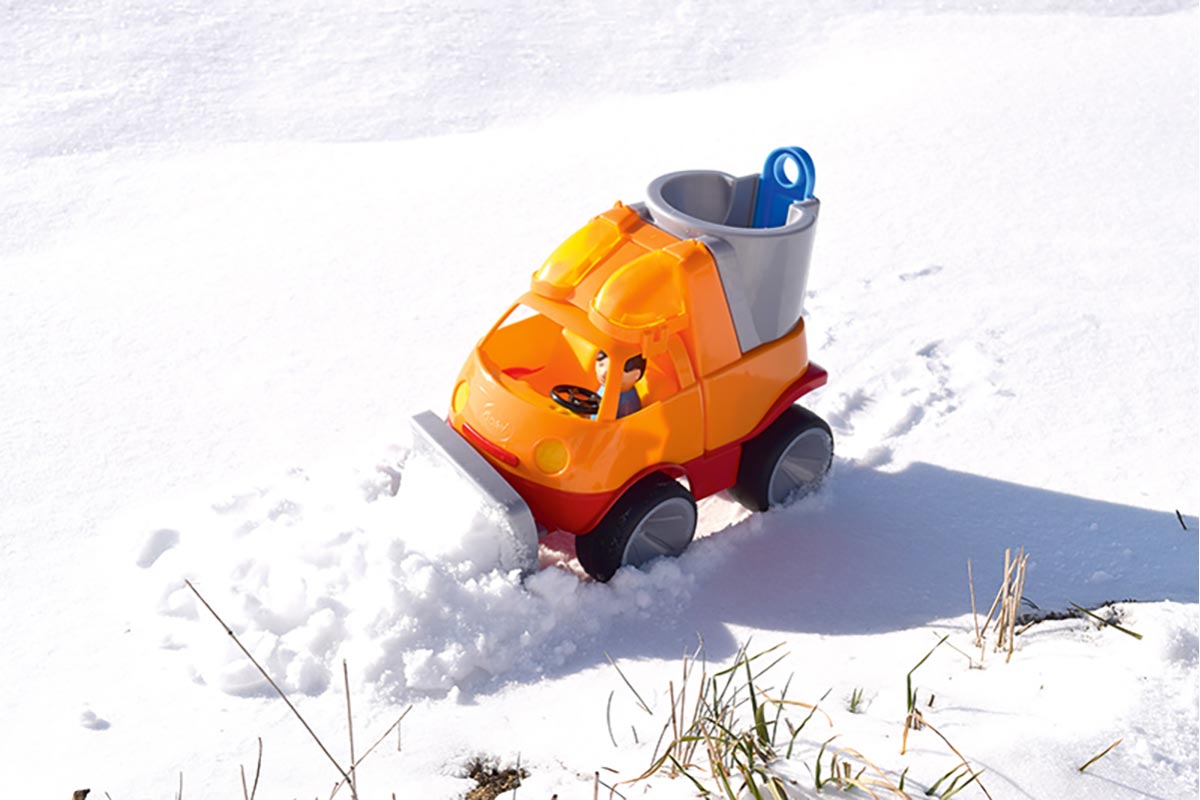 Das Fahrzeug besticht mit seinen gummierten Räder und seiner starken Stahlachse, mit der das Schneeräumfahrzeug einiges an Gewicht aushält. Es besteht außerdem aus hochwertigem Kunststoff und lässt sich leicht unter fließendem Wasser oder mit einem feuchten Tuch reinigen.