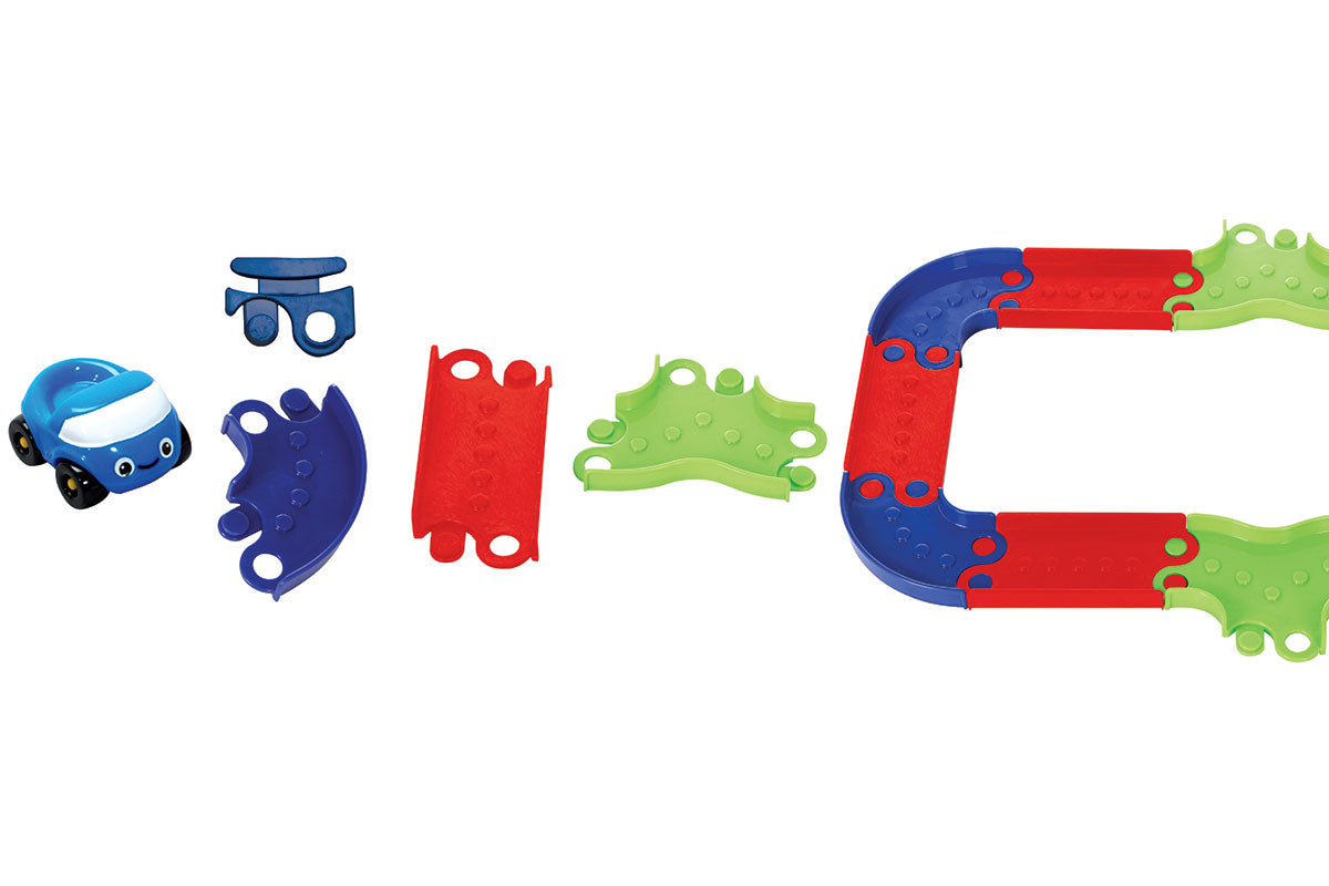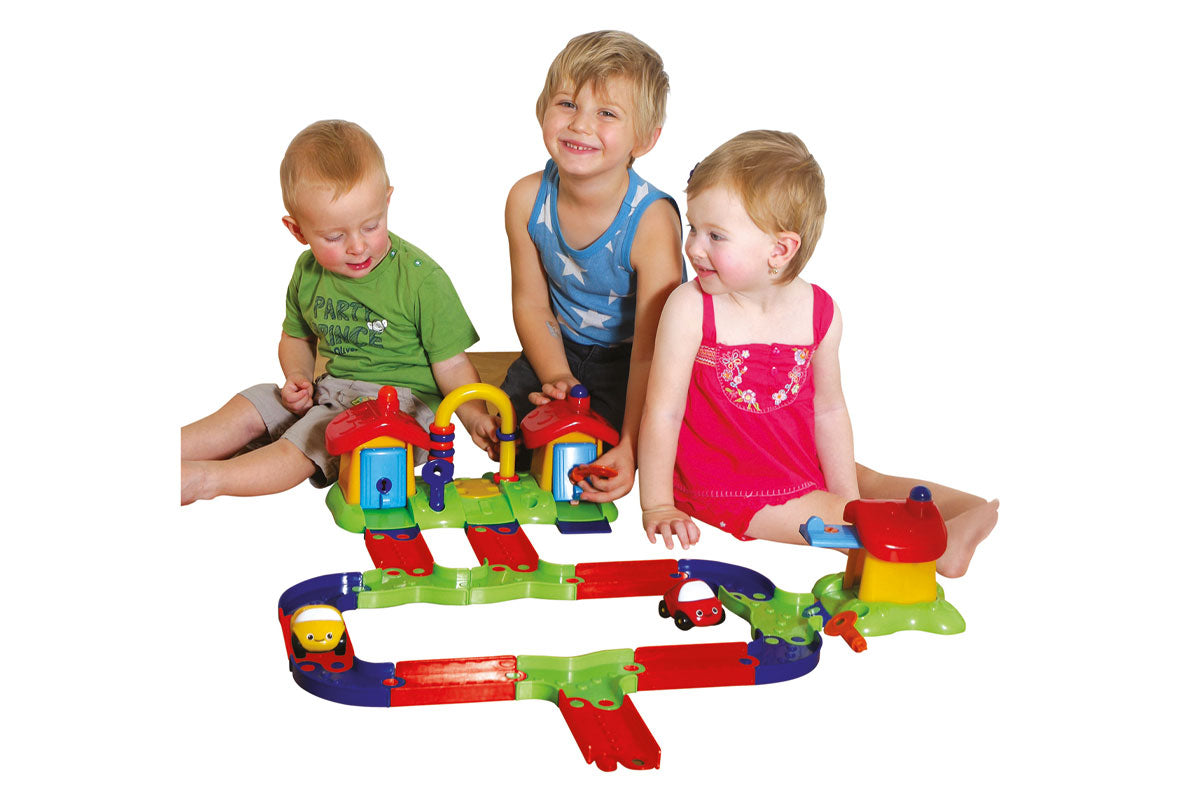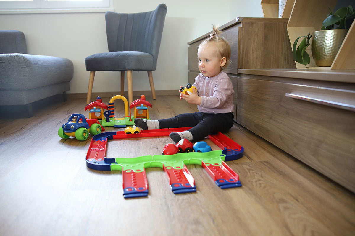Durch die Adapterteile ist es möglich das Speed-Buggy-Haus mit der Speed-Buggy-Garage zu verbinden und so eine längere Spielstraße zu bauen!