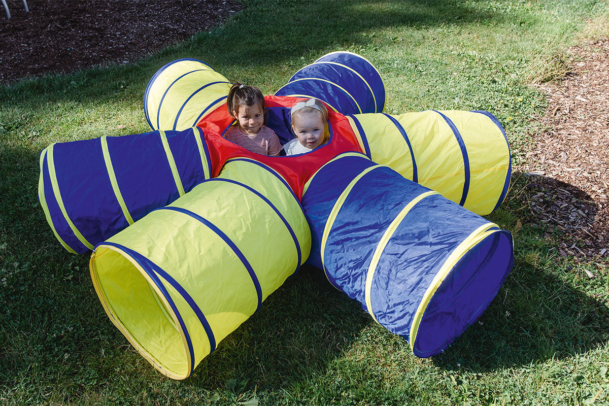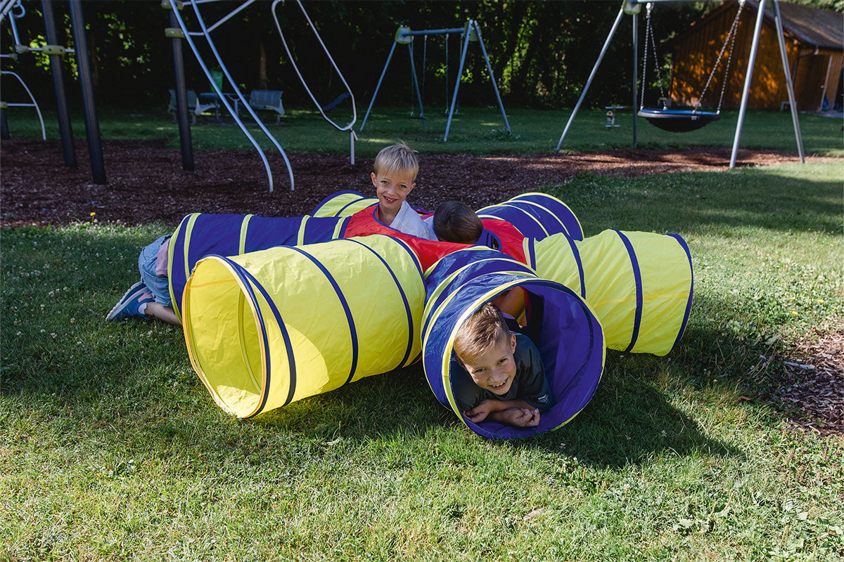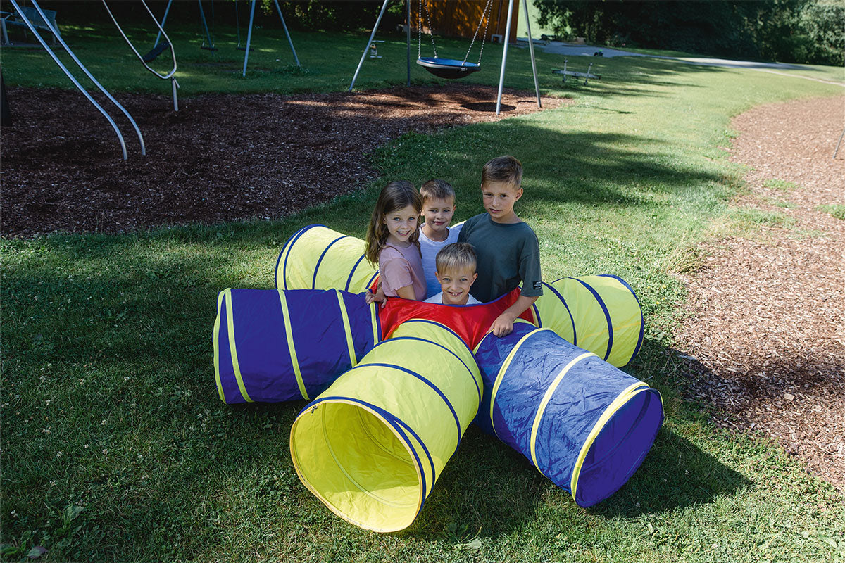 Der Kriech-Krake Zipper ist ein flexibles und innovatives Spiel- und Bewegungsgerät, das durch praktische Reißverschlüsse miteinander verbunden werden kann. Ideal für Kinder, bietet es eine aufregende Möglichkeit, Kriechen, Klettern und Entdecken zu kombinieren. Mit einer Breite von ca. 2,00 m und einem Tunnel-Durchmesser von ca. 50 cm, ermöglicht es abwechslungsreiche Einsatzmöglichkeiten. Jedes Tunnelstück misst ca. 65 cm, während das Mittelteil einen Durchmesser von ca. 70 cm bietet. Das robuste Material aus Polyester sorgt für Langlebigkeit und Stabilität, sowohl für den Innen- als auch den Außenbereich.