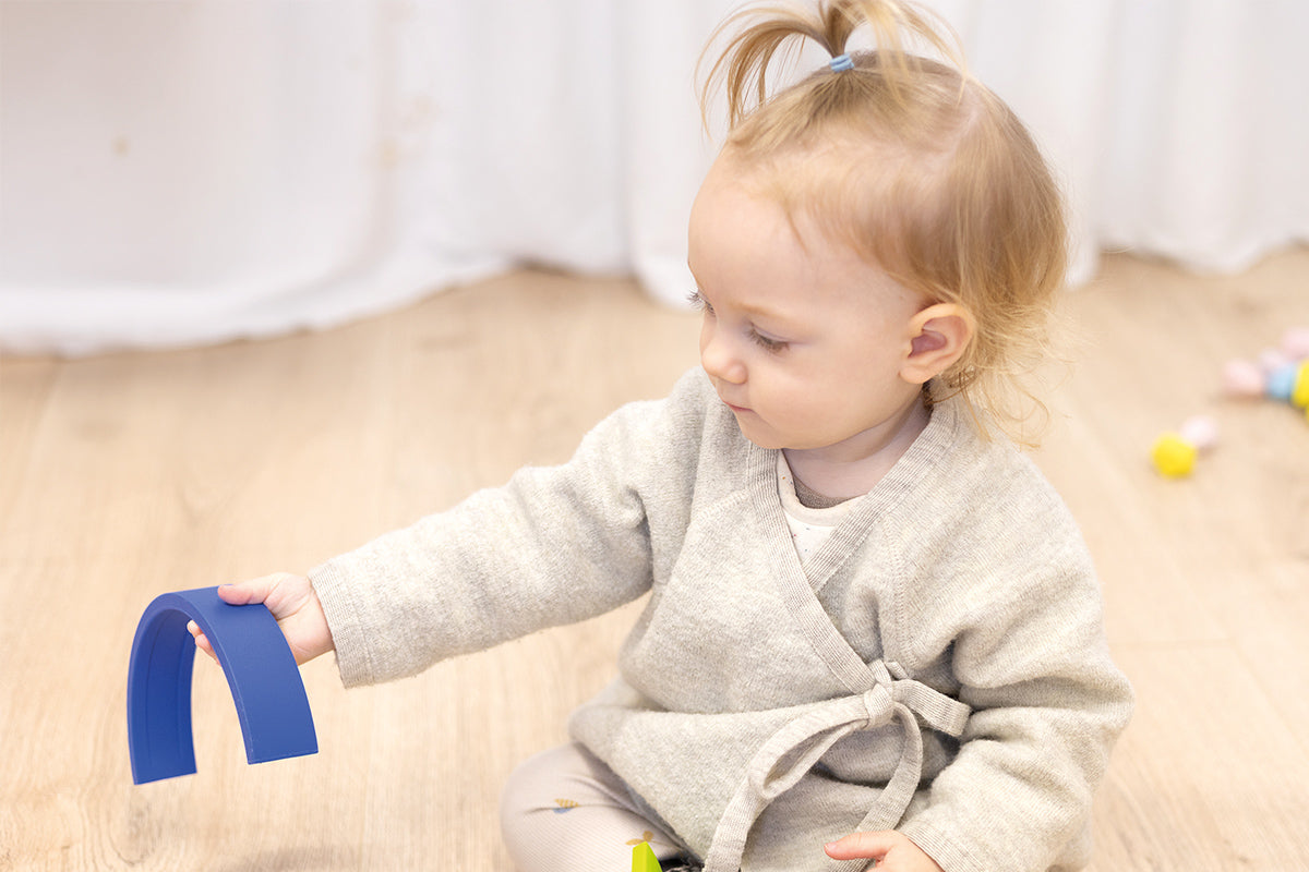 Kinder können die weichen Silikonteile stapeln und sortieren, wodurch die Kreativität angeregt wird und sich dabei gleichzeitig die motorischen Fähigkeiten und die Hand-Auge-Koordination spielerisch entwickeln.