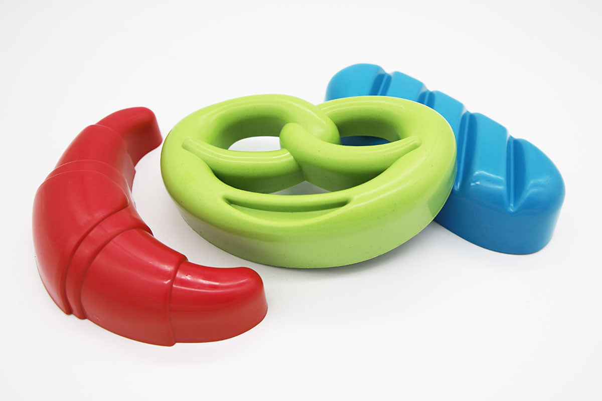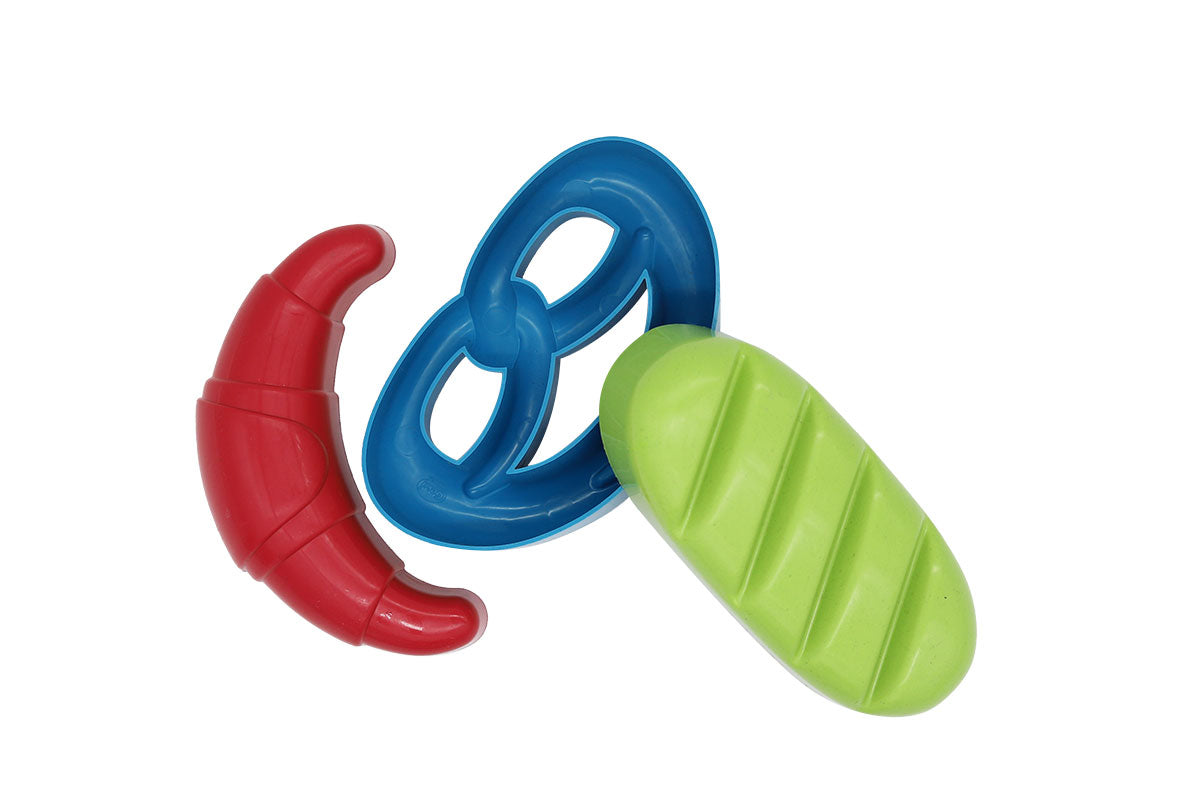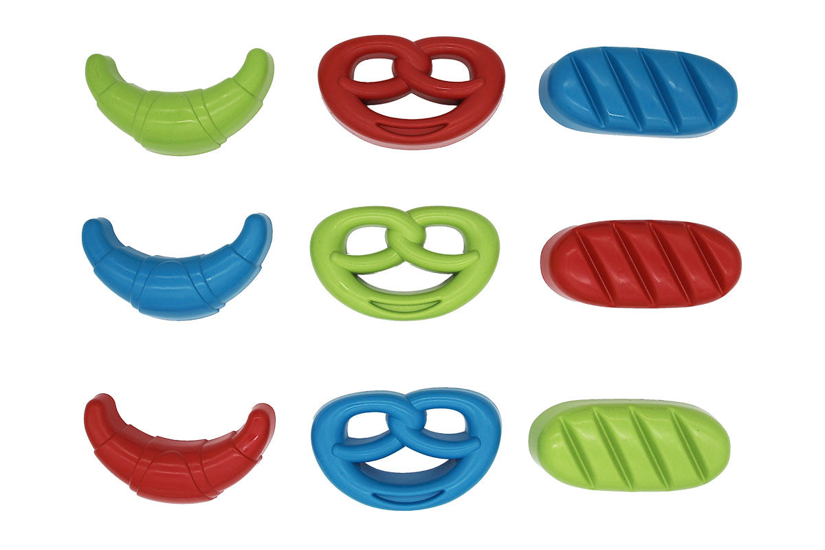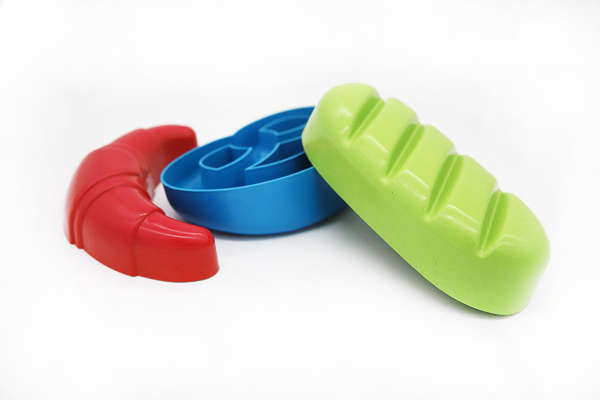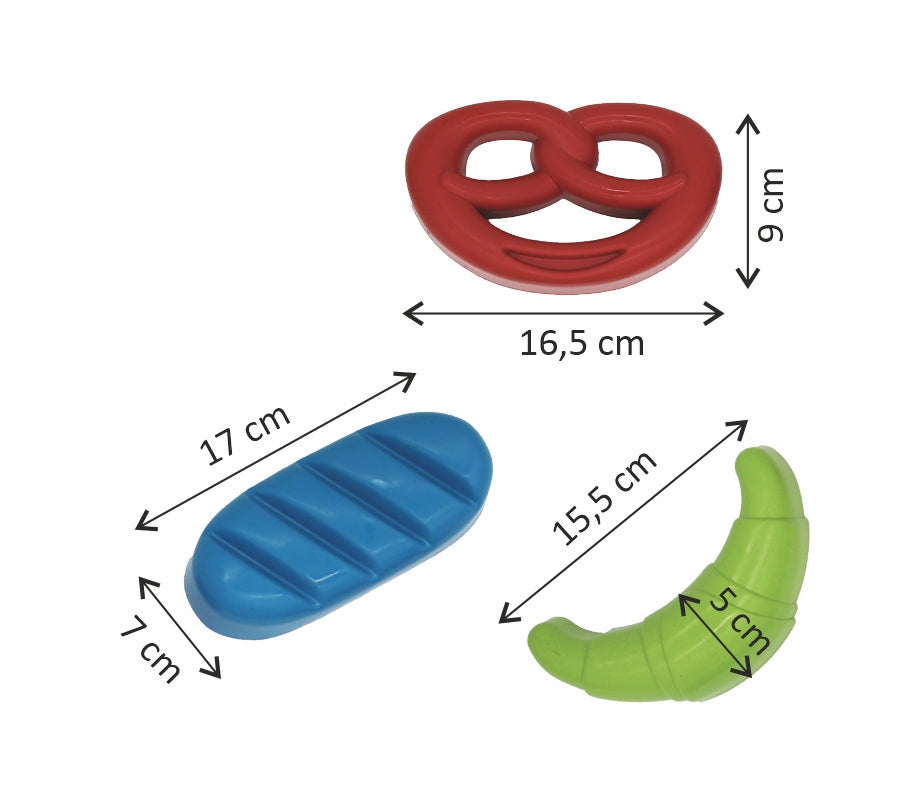 Die robusten und leichten Sandformen werden mit feinem Sand gefüllt und im nächsten Schritt wird der Sand in den Formen festgedrückt bzw. festgeklopft. Nachdem die Figuren vorsichtig umgedreht wurden und auf einem ebenen Untergrund platziert wurden, können diese vom Sand entfernt werden. Nun werden entweder ein Brot, eine Brezel oder ein Croissant im Sand sichtbar.