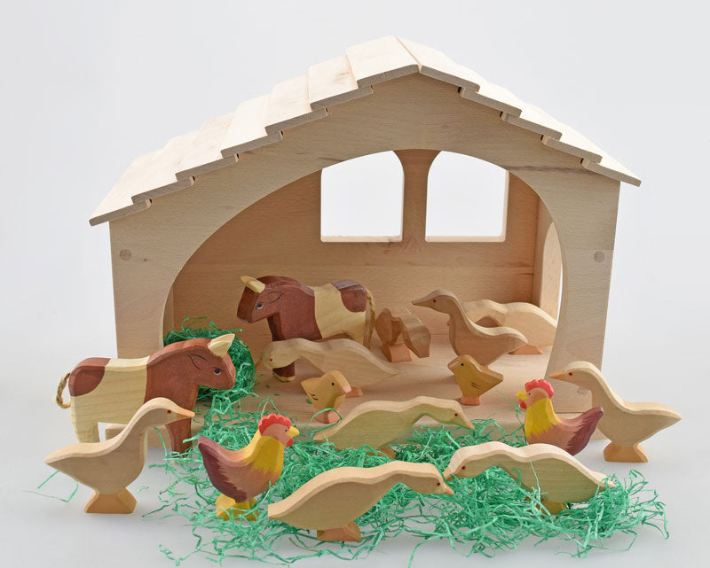 Der Stall aus Holz ist passend zum Krippenspiel oder jeglichen Rollenspielen mit Tieren wie zum Beispiel Bauernhof.