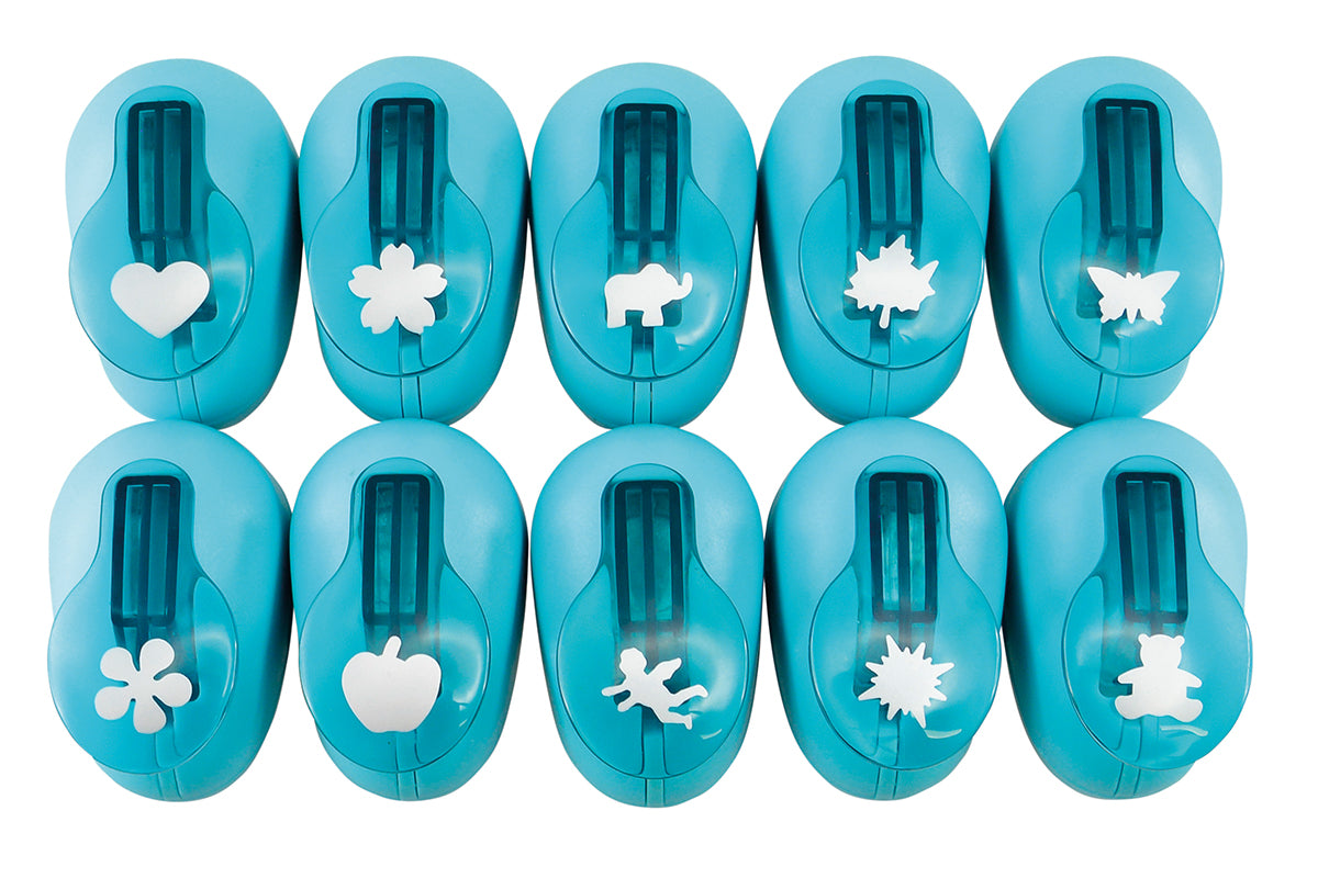 Die einzelnen Wunderlocher stanzen folgende Motive: Stern, Engel, Bär, Schmetterling, Apfel, Elefant, Blume, Kleeblatt und Ahornblatt!